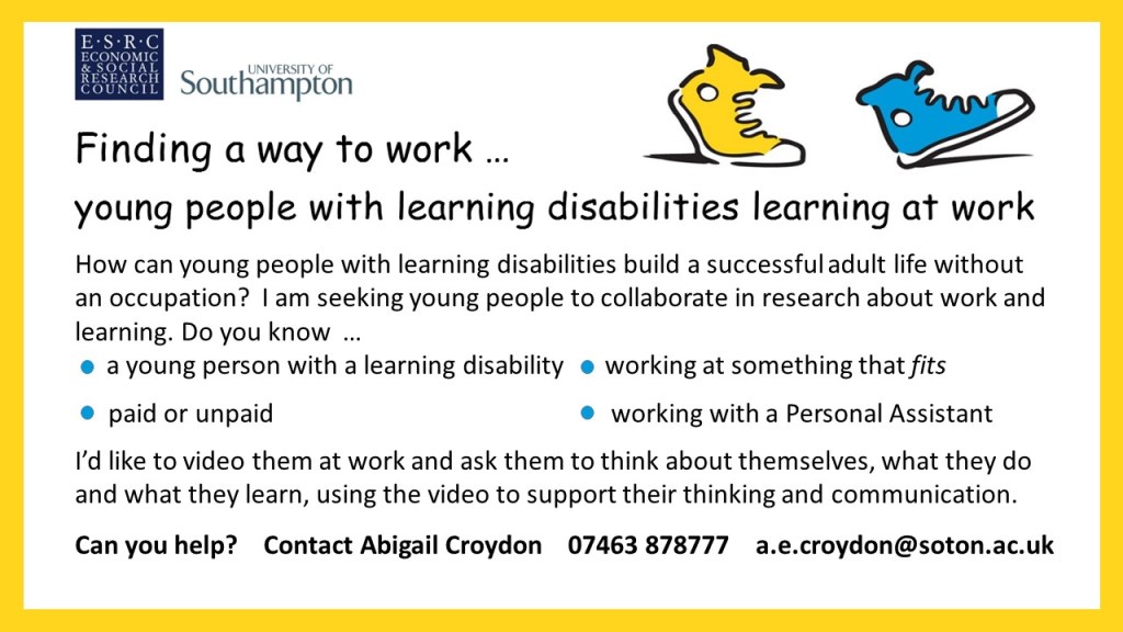 Paid work – formal employment – demands specified levels of attainment and productivity so that many pathways to work are not open to people with intellectual and developmental disabilities. As most other adults in countries like the UK have paid work and work most of the time, this results in a huge divide in lived experience and opportunties to learn through social participation. ‘Finding a way to work’ looks at the learning that may take place on both sides of the divide when young people take part in forms of work that suit their interests and strengths, with dedicated support from a Personal Assistant. The research will consider how far working in this way may offer some of the ‘goods of work other than money’ (Gheaus and Herzog, 2016) – especially the reciprocal learning that arises when young people are able to participate, to make a social contribution, experience community and gain social recognition.